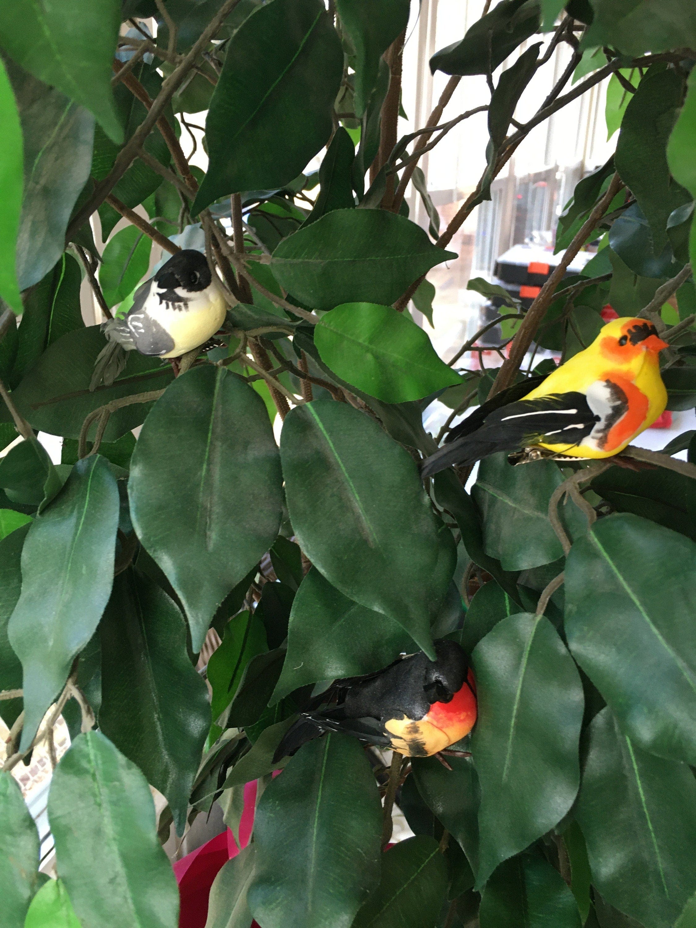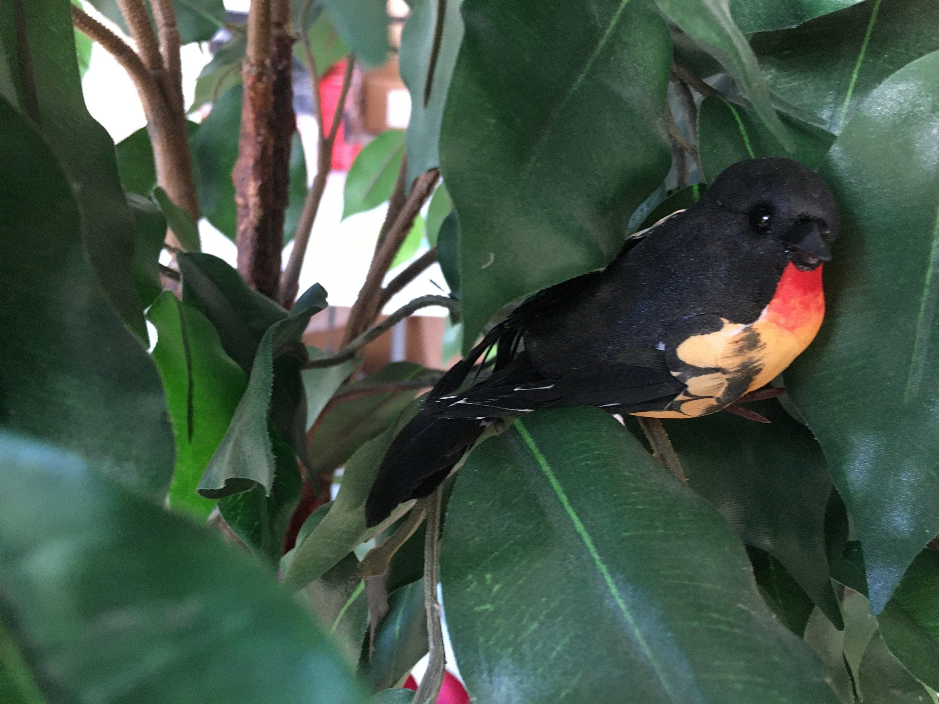 Are you looking for a variety of birds to use in your project? These could be just what you are looking for! This set of 6 multi-colored birds are 3.25" in length. There are 3 different kinds of birds in this set. One pair has a black head and back, with an orange and red chest. Their wings and tail feathers are black. The second pair has a bright yellow body and an orange face. Their wings and tail feathers are black also. The third pair has a white and pale yellow breast with a gray back, wings and tail feathers. Each bird has plastic feet and a clip that makes it easy to attach to branches. How can you use this colorful set?