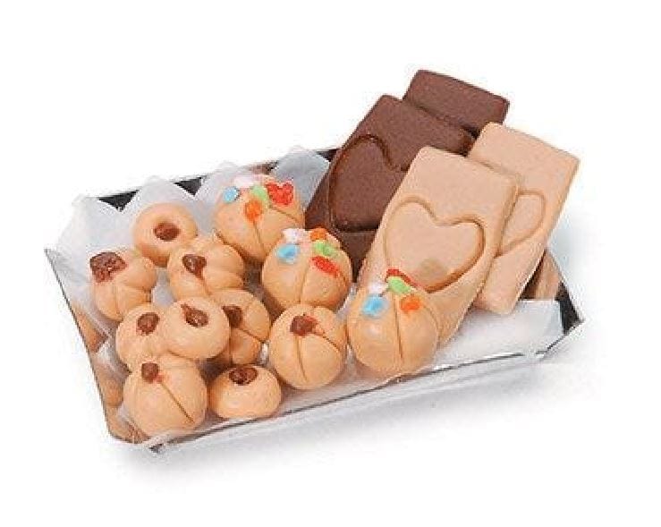 This Timeless Minis™ miniature cookie tray has assorted cookies made of resin. They sit on a metal silver tray that is lined with paper. Place these assorted cookies into any dollhouse, display, or shadow box to add a realistic touch! Look for other kitchen miniatures to add to your dollhouse!