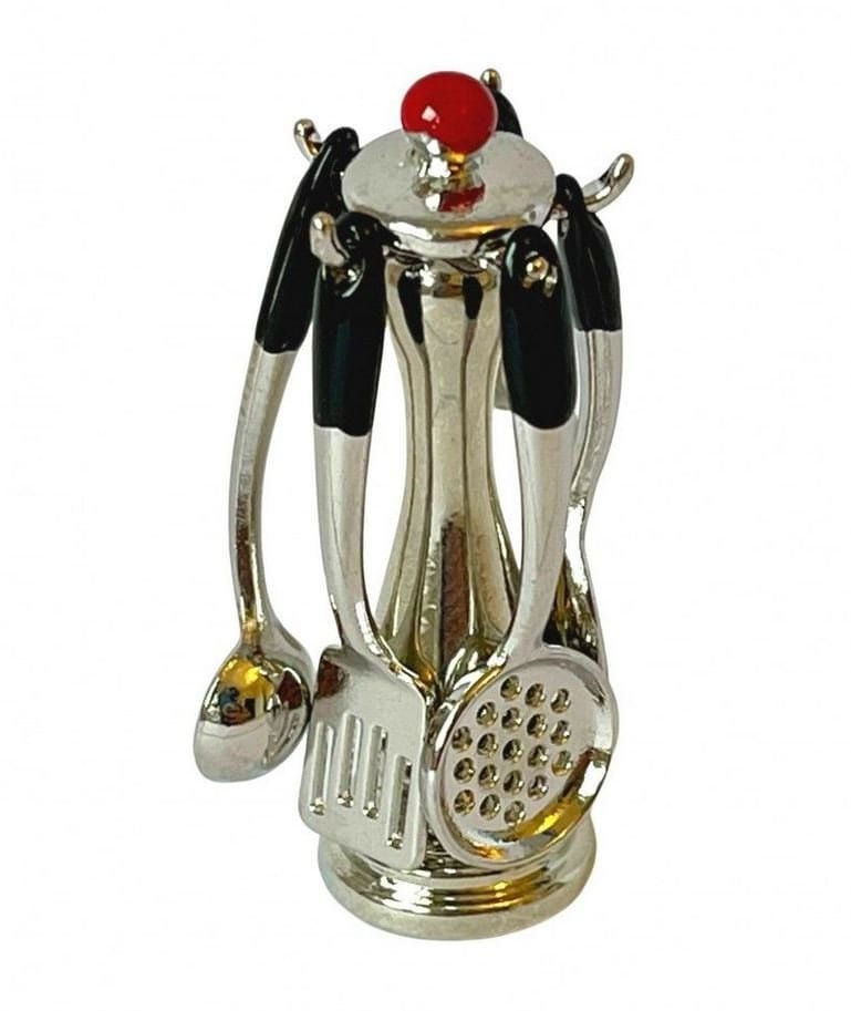 Dollhouse Kitchen Chrome Utensils on a Stand