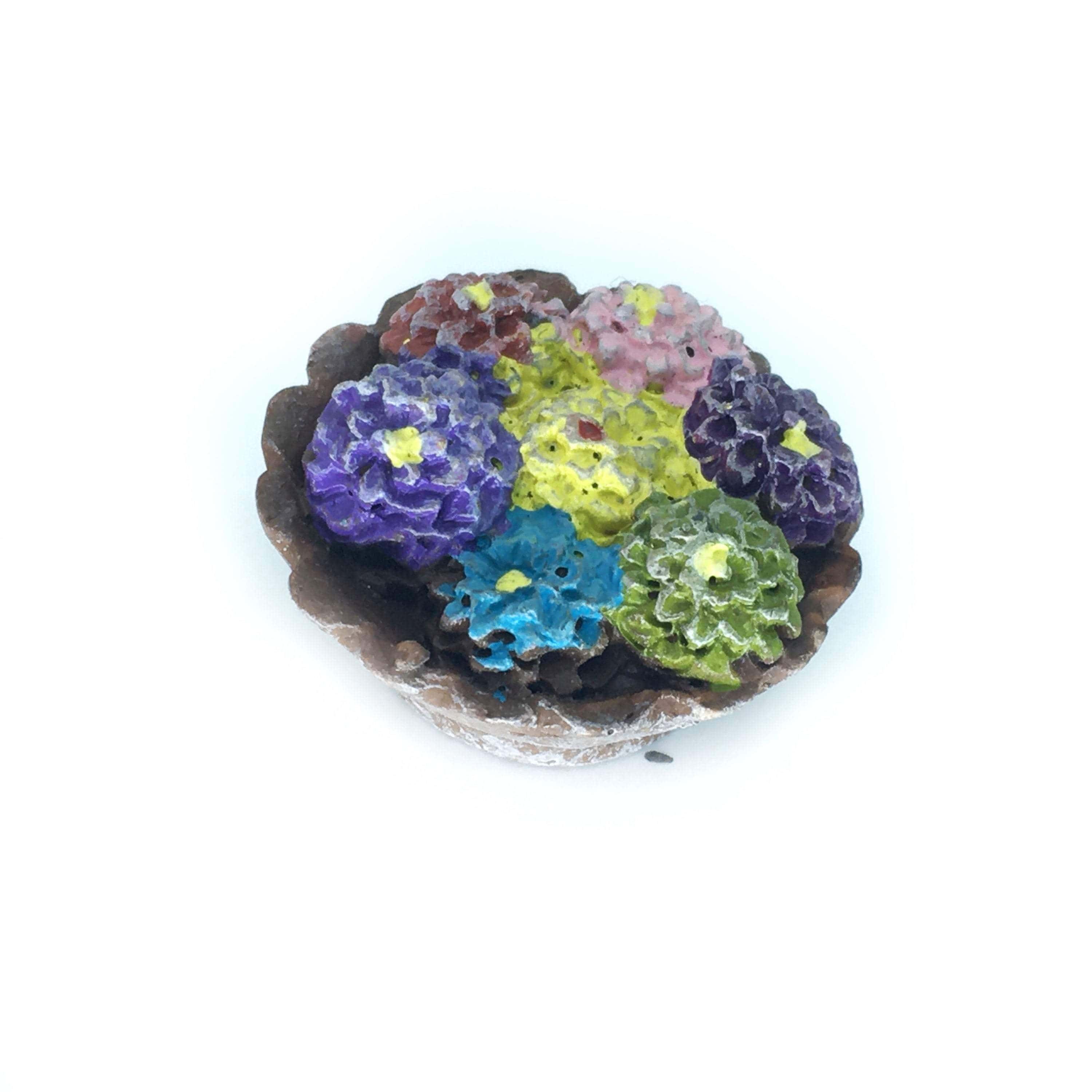 This unique piece is made of resin. It is a bowl filled with colorful flowers. It can be used to decorate a dollhouse table, entryway or bedroom dresser. Where will you use it?