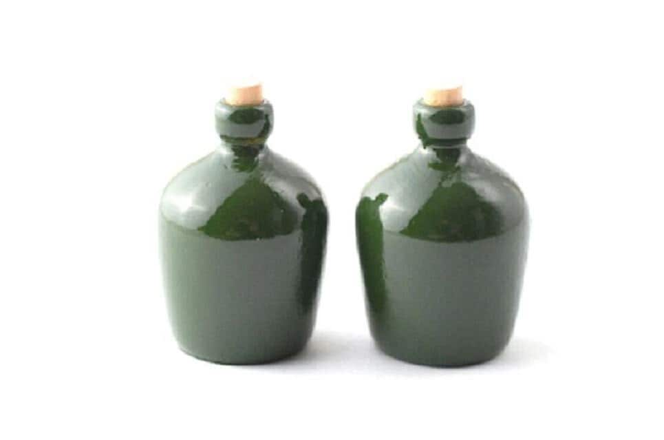 Pair of Green Dollhouse Stoneware Carboy Bottles